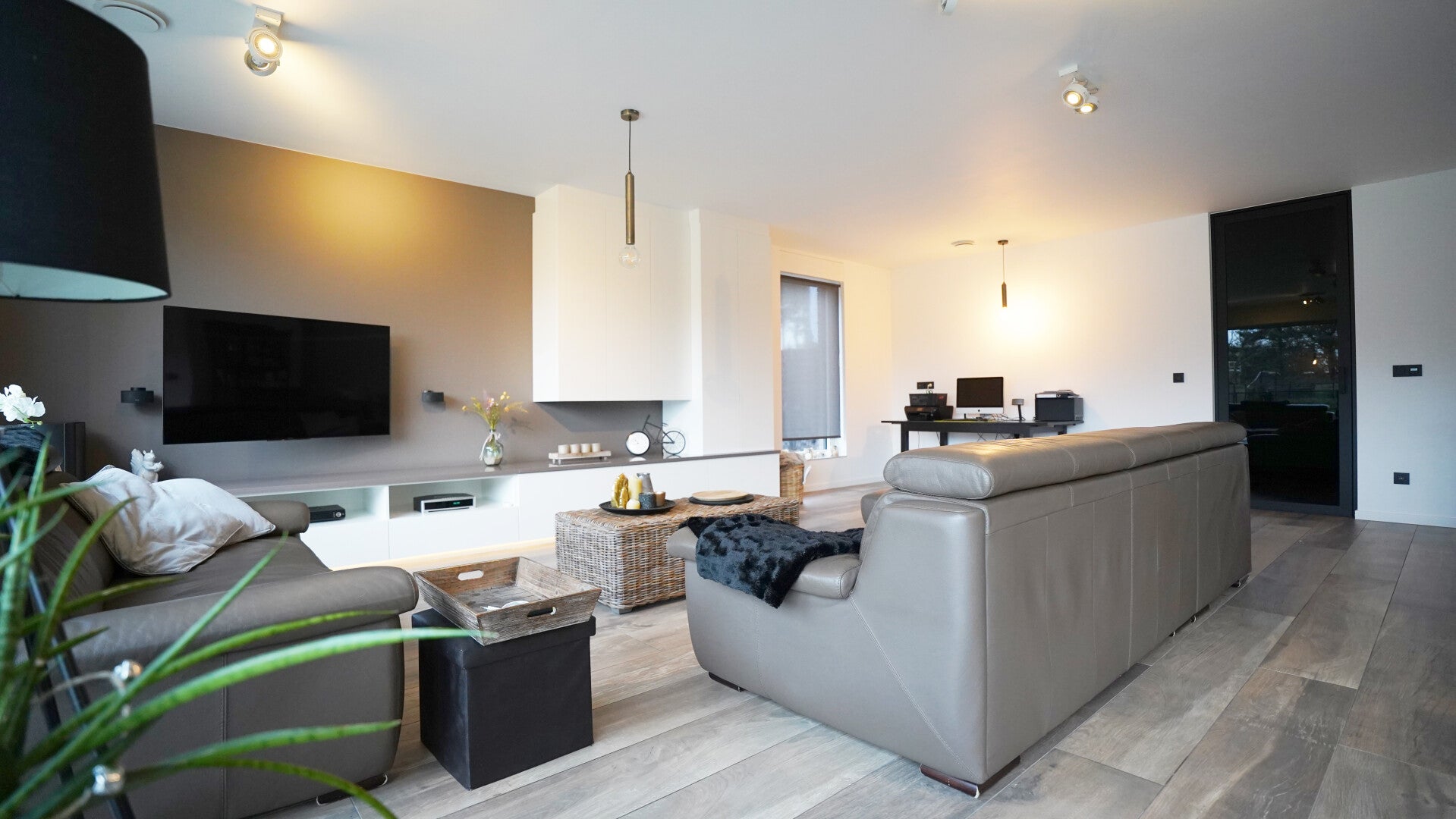 Bij het betreden van de woning valt in de ruime hal met vestiaire en gastentoilet ogenblikkelijk de hoogwaardige afwerking in het oog. De leefruimte met open keuken (met naastliggende koele berging) is voorzien van grote raampartijen dewelke uitgeven op de tuin. De lichtinval is dan ook ontzagwekkend. Op de eerste verdieping treffen we 3 royale slaapkamer waarvan 1 met ensuite badkamer en dressing. Ten einde de nachthal treffen we een tweede dressing met badkamer en toilet.