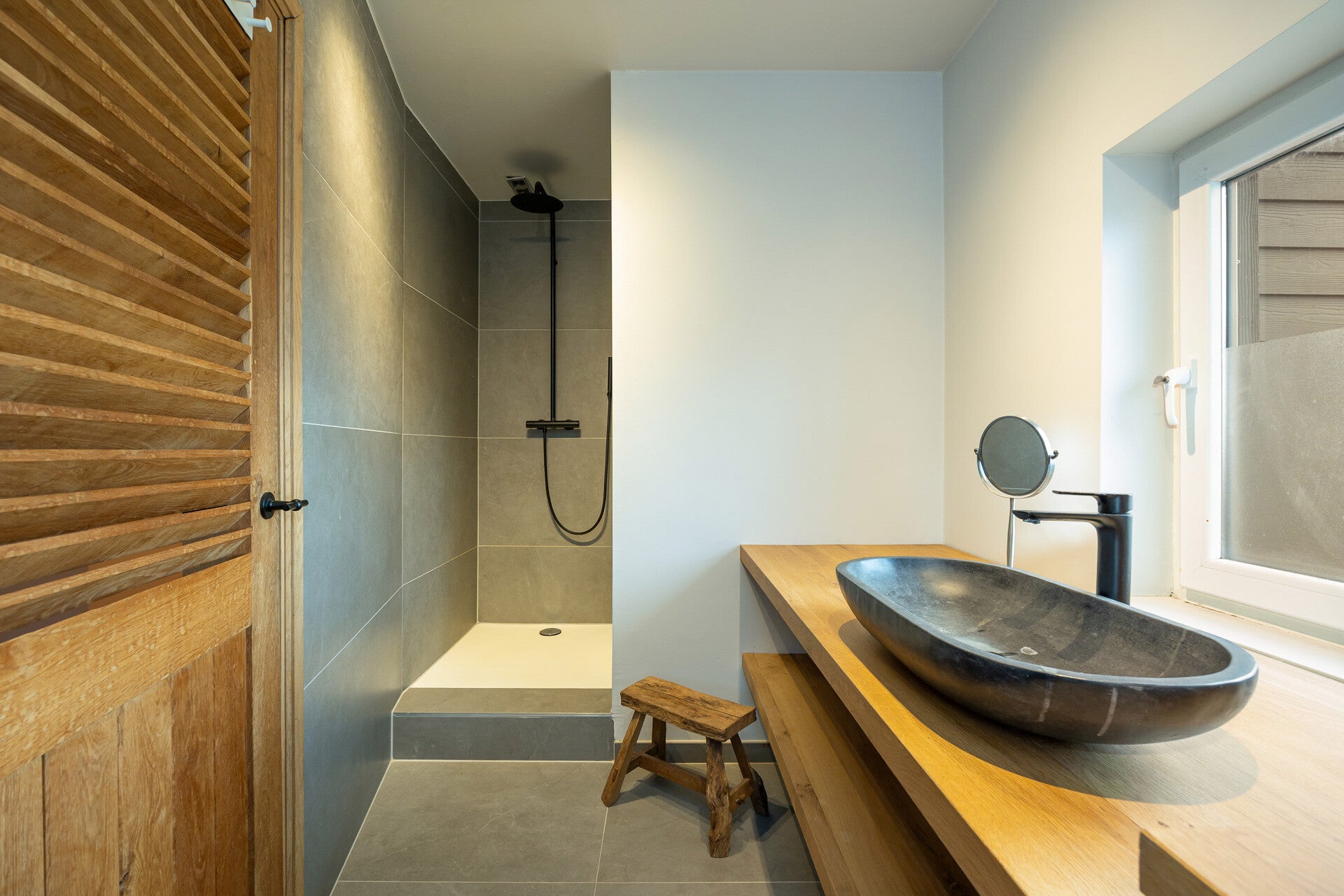 De overige ruimtes op de eerste verdieping werden door de eigenaar ingericht als privé-woongedeelte en omvatten meerdere slaapkamers en een badkamer. Hierdoor ontstaat een flexibel inzetbare scheiding tussen de professionele activiteit en het residentiële deel van het pand.